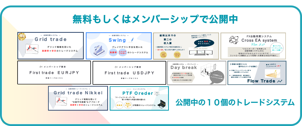 ”Grid trade Nikkei グリッドトレード日経”はメンバーシップ(有料会員)内にて公開している自動売買システム(EA)です。